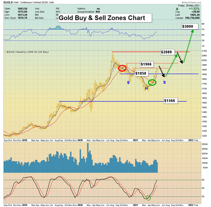 Dans son dernier billet, Stewart Thomson estime que la marche de l’or vers les 3.000 $ est engagée alors que la confiance dans les monnaies papier va en prendre un sacré coup dans les mois à venir. Bien sûr, il ne s’agira pas d’un voyage en ligne droite, l’ascension se fera avec des hauts et des bas. D’après son analyse technique, on devrait, à partir d’environ 1.966 $, connaître un repli vers les 1.820 $. Après quoi, le prochain plat de résistance serait à 2.089 $. Pour déterminer les zones d’achat et de vente, Thomson conseille de suivre l’évolution des moyennes mobiles 5 et 15 : les croisements à la hausse et à la baisse sont respectivement autant de signaux d’achat ou de vente, selon lui.