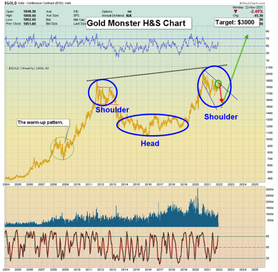 « J’ai suggéré que les investisseurs dans l’or doivent se préparer à voir le métal jaune descendre en dessous de 1.800 $ (et peut-être même plonger jusqu’à 1.566 $-1.450 $) avant qu’un énorme rallye avec pour objectif 3.000 $ ne commence. Le dip s’est présenté et la grande question est de déterminer la cause de ce repli.